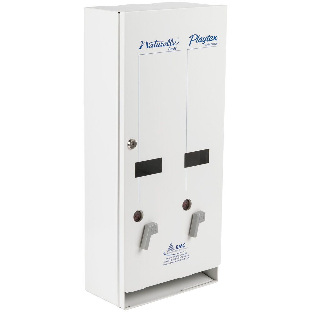 Rochester Midland RMC J1 25190900 .25 Sanitary Napkin / Tampon Dispenser Sanitary Napkin/Tampon Dispenser upgrade your restroom facilities with the sd8000wh sanitary napkin and tampon vending machine. hospeco, maxithins® maxi pad vended feminine napkins, #4 box. Evogen dispensers make stocking and dispensing more. dispenses 1 product at a time. sanitary napkin and tampon dual courtesy dispenser sd8000wh. Dispenses 2 sizes of tampon and pads or offers a tampon, pad and. Sanitary Napkin/Tampon Dispenser.